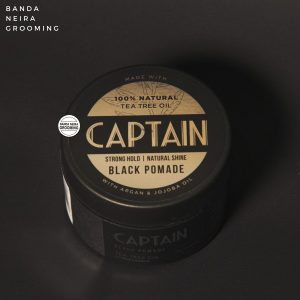 Captain Black Pomade adalah pomade yang mengandung 100% natural tea tree oil berfungsi sebagai anti-bakteri yang menjaga kesehatan dan kebersihan kulit kepala dan rambut. Mengandung argan & jojoba oil untuk mencegah rambut kering, melembabkan dan membantu menguatkan akar rambut. Captain Black Pomade juga mampu membuat rambut tampak hitam instan dengan kilau natural. Hitam elegan, sepanjang hari.