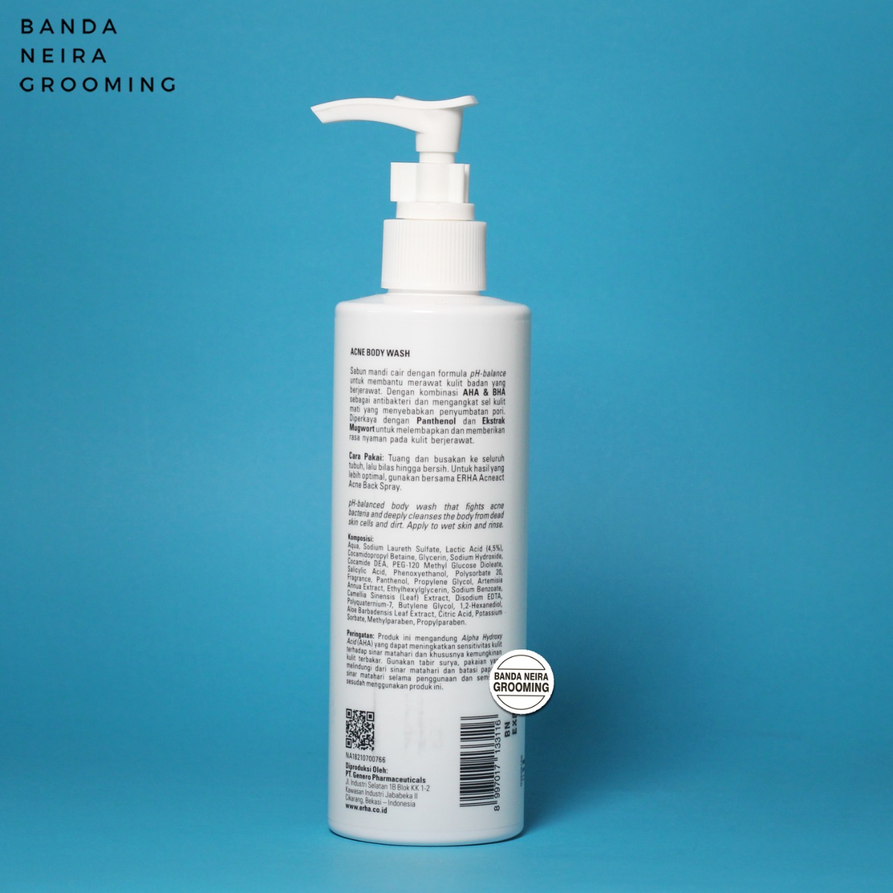 Tuang dan busakan ke seluruh tubuh, lalu bilas hingga bersih. Untuk hasil yang lebih optimal, gunakan bersama ERHA Acneact Acne Back Spray.